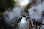 温泉と火山への遊歩道 新旧を問わないで 人々は歩き 友を得る