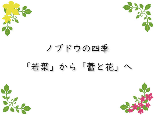 ノブドウ(野葡萄)は北海道から沖縄まで分布する、つる性の落葉する木本です。春、枝から芽吹き、赤みを帯びた若葉は、次第に切れ目のある緑色の葉へ。また小さな蕾は膨らんで、目立たない小さな黄色の花を咲かせます。そして若い緑色の実は、彩り豊かな色を付けます。夏になるにつれて、ノブドウは多彩な色の実たちが、人々の目を惹きます。ノブドウの白、水色、青、瑠璃色、紫、紅色など様々な色の実は、「宝石の実」ともよばれます。秋になっても陽を受け、実のひとつひとつの光沢に反射しカラフルに変化して行く実・・・。また1つの実に小さな斑点を伴うものが多く、見れば見るほど表情豊かで魅力的な実です。やがて晩秋から初冬には、葉は黄葉となり、枯葉となって地面に戻ります。しかし春の訪れとともに、再び新しく芽吹き、若葉と緑葉から蕾を抱き、黄色い小さな花を咲かせ、再び多彩な色をした宝石のような実たちが、周りの景色に溶け込みます。(潮 信輔)