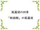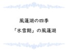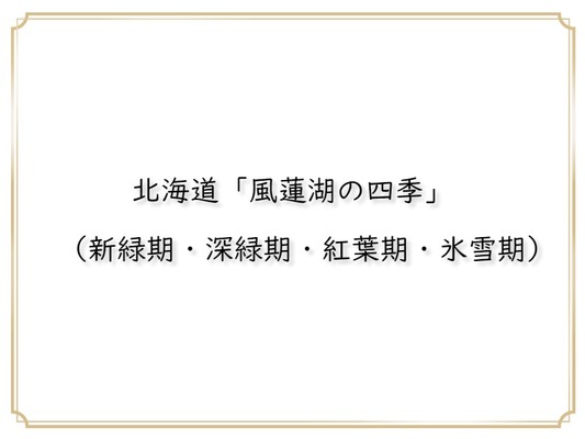 風蓮湖の四季は、それぞれ自然の美しさで、新緑、深緑、紅葉、積雪期と季節の流れを、静かに物語っています。また湖の傍にある原生の森・・・。その散策路を歩くと、植物たちの季節ごとの風情に再会できます。そして静かな湖は勿論ですが、散策路を歩くたびに、新たな発見もあり、旅情を高めてくれます(潮 信輔)