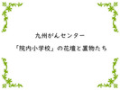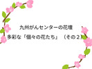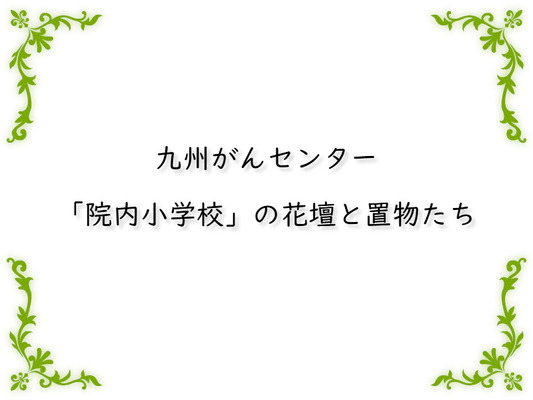 今回は、九州がんセンターでの「花と緑の小径」の花壇を、主に掲載いたしました。植物の花や実は勿論ですが、花の仲間たちの作業もお知らせいたします。そして特に、この花壇の一部分として設けてある、「院内小学校の花壇」の花たちや可愛い置物たちも紹介しました。