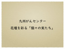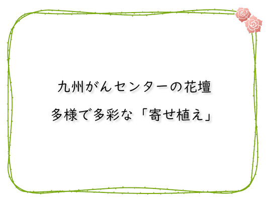 九州がんセンターの病院に入退院されたり、外来で通院されている小児を含む大人の患者さん、そのご家族の方々へ・・・。このボランティア花壇には、初代の入江英雄院長の標語「病む人の気持ちを」と共に、病院のすべての職員の願いが込められています。今後とも、病院に従事する職員の願い、および数十年にわたりボランティア活動をされてきた、”花の仲間たち”の心情を知っていただければ幸いです。(潮 信輔)