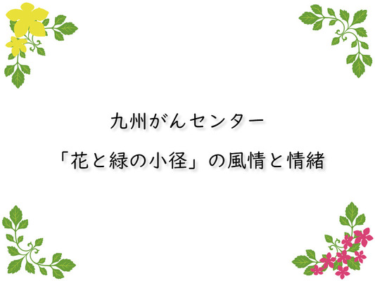 福岡市にある「九州がんセンター病院」の敷地内には、約260種類の花や木があります。それぞれ四季の巡りとともに、多彩な花や実たちが、患者さんやその家族、病院の職員の皆さんを癒やしてくれます。とくに病院の玄関近くでは、細くて少し曲がりくねった道があり、最近「花と緑の小径」と名付けられました。ここでは”花の仲間たち”と呼ばれるボランティアによって、花壇造りとその管理と世話が、春夏秋冬、暑い日も雪の日も行われています。メンバーは約20人で、私もその一員として花を植えたり草取り、またこの花壇やそばの林で、咲いた花や実たちを撮影しています。 天気が良い日には、祖父母、両親、子どもや孫など3世代にわたる人々が、揃って、この花壇の花や実たちを見ながら小径を、ゆっくりと歩いておられます。それぞれの会話も弾んでいる場面を、多く見てきました。