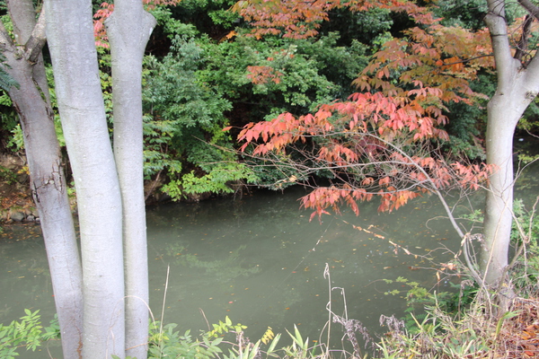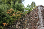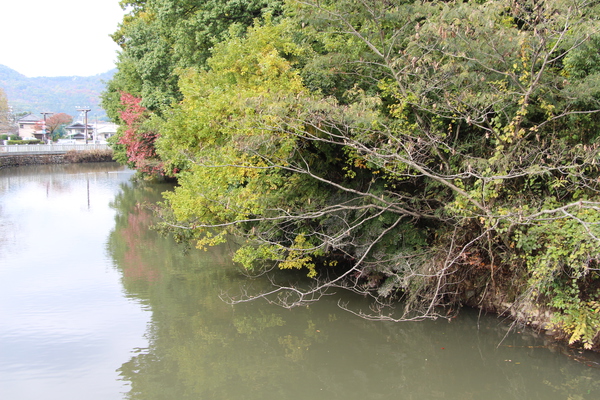 次に神社を出て躑躅ケ崎館跡へ。堅い土塁や堀跡、石垣、枡形、曲輪、堀切などが残っていて・・・、その周りは多彩な木々が繁っていました。その一つである北側には、主郭に至る通路に沿って石積みを備えた枡形虎口。武田氏の興亡をしのぶことができました。山腹には曲輪群が広がり、収穫を終えた棚田となっていました。そしてその背後には、山頂に城もあったという要害山がそびえ、武田氏の城郭の規模が広大であったことを知ることが出来ました。(潮 信輔)