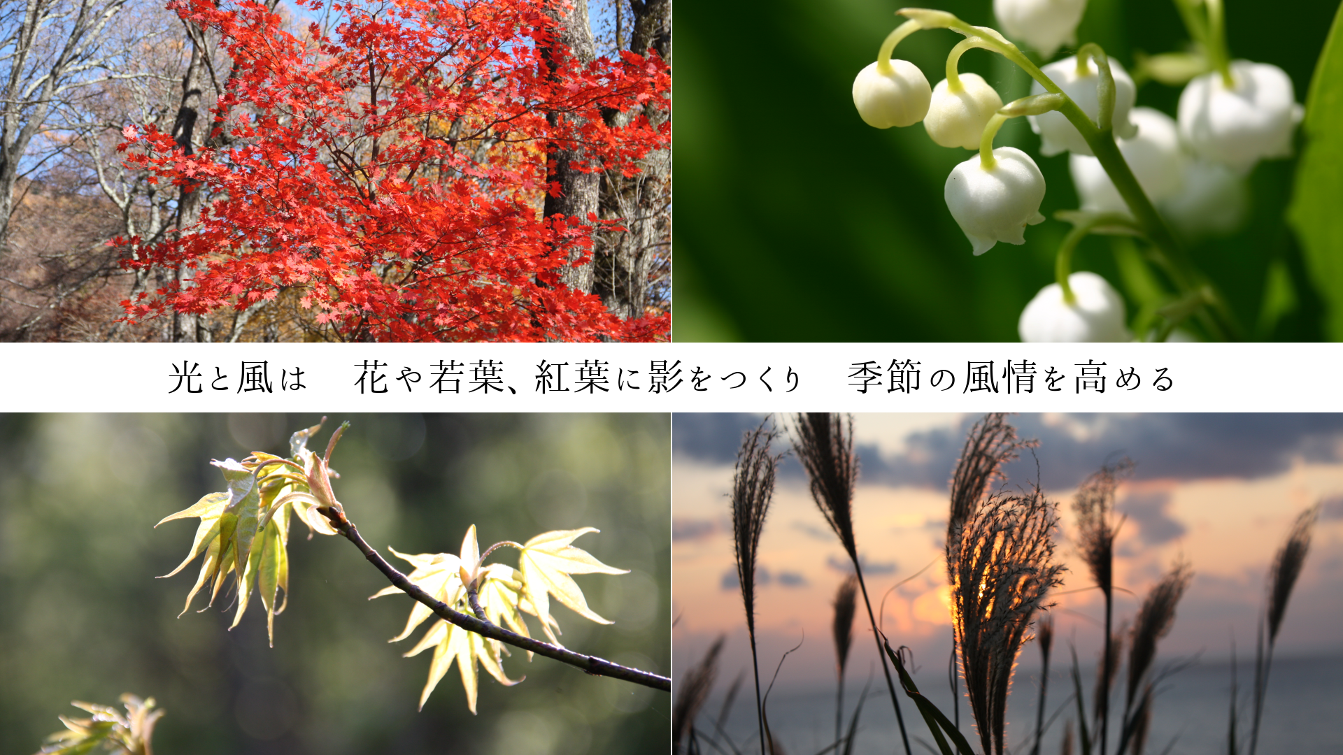光と風は 花や若葉、紅葉に影をつくり 季節の風情を高める